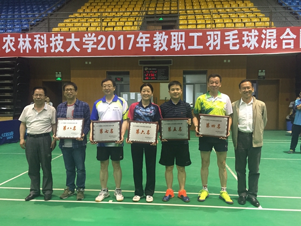 5月14日-18日,西北农林科技大学2017年教职工羽毛球混合团体赛于在南校区体育馆顺利进行。经过五日三轮的激烈角逐,我院工会不惧强敌,奋力拼搏,斩获该项比赛第四名,取得历史性突破。