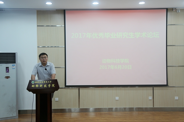 6月20日下午,宅宅爱动漫 2017年优秀毕业研究生学术论坛在107学术报告厅举行。山东农业大学李福昌教授、宅宅爱动漫 生命科学宅宅爱动漫 陶士珩教授、动物医宅宅爱动漫 王华岩教授、杨鸣歧教授、童德文教授担任论坛评委。院领导赵延安、昝林森、孙超、王晓娟、王力及部分教师、研究生100余人参加了本次论坛。论坛开幕式由院长助理凌飞副教授主持。