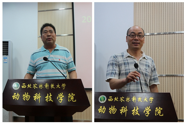 学术报告分别由孙超教授、张恩平教授主持。来自动物遗传育种与繁殖、动物营养与饲料科学专业、草学、水生生生物学、动物学、特种经济动物饲养6个专业的12名2017届博、硕士毕业研究生分别以“奶山羊乳腺组织乳脂代谢关键miRNA的筛选及功能验证”、“circLMO7竞争性吸附miR-378a-3p调控肌细胞增殖、分化的机制研究”、“鸡胚给养维生素C对肉鸡脾脏发育和免疫功能的影响”、“奶牛乳腺炎中葡萄球菌甲氧西林抗性传播的机制研究”、“基于多组学的秦川牛、黑毛和牛、安格斯牛及大额牛遗传特性研究”等为主题做了精彩的学术报告。李福昌教授等5位评审老师对报告人的研究方法、结论凝练等方面进行了现场点评。