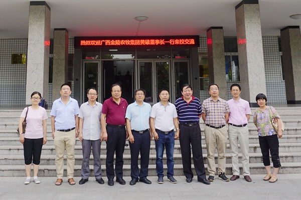 6月24日-25日,应杨公社教授邀请广西金陵农牧集团公司董事长黄雄一行来我院访问交流。赵延安书记和姚军虎院长分别会见了黄雄董事长一行。杨公社教授、高玉鹏教授、胡建宏教授和庞卫军教授等参加座谈会。