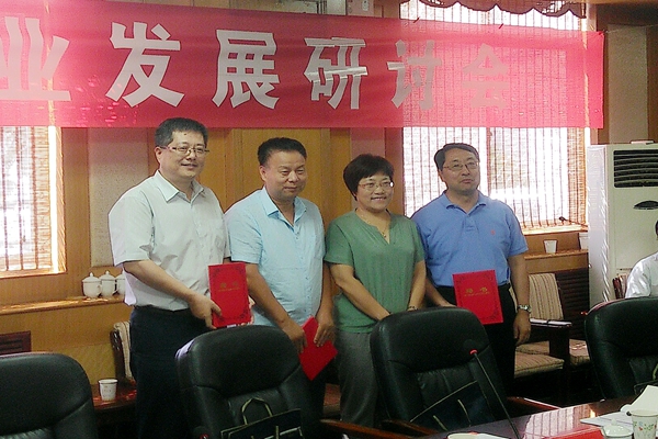 何玲书记向罗军副校长、曹斌云教授、姚军虎院长颁发了“千阳县莎能奶山羊产业技术服务专家”聘书