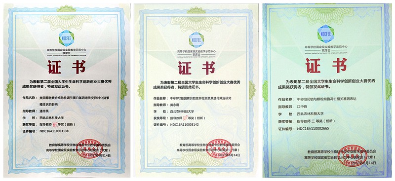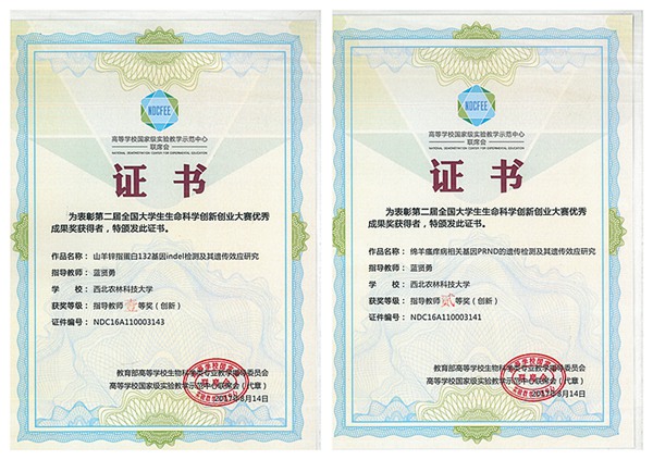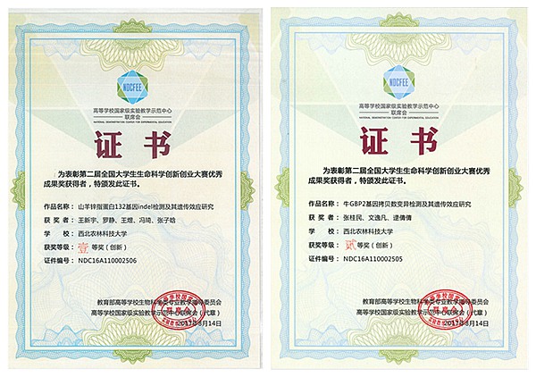 经过激烈角逐,我院蓝贤勇教授指导的2013级本科生王新宇团队(王新宇、罗静、王煜、冯琦、张子晗)的参赛作品《山羊锌指蛋白132基因indel检测及其遗传效应研究》获第二届全国大学生生命科学创新创业大赛一等奖;潘传英副教授指导的2014级本科生张阳海团队(张阳海、李永、曹迪、鱼婷、高佳阳)的参赛作品《类固醇合成急性调节蛋白基因遗传变异对公猪繁殖性状的影响》、黄永震讲师指导的2014级本科生张桂民团队(张桂民、文逸凡、逯倩倩)的参赛作品《牛GBP2基因拷贝数变异检测及其遗传效应研究》、蓝贤勇教授指导的本科生李洁团队(李洁<创新>、朱熙春、刘璐、张效禹)的参赛作品《绵羊瘙痒病相关基因PRND遗传变异及其遗传效应研究》获二等奖,江中良副教授指导的创新宅宅爱动漫 的本科生郑宇新团队(郑宇新、葛莹)的参赛作品《牛卵泡闭锁与颗粒细胞凋亡相关基因表达》获三等奖。同时,蓝贤勇老师分别获指导教师一等奖和二等奖,潘传英和黄永震两位老师获指导教师二等奖,江中良老师获指导教师三等奖。