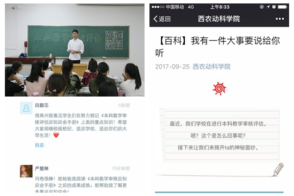 为进一步加强学生对本科教学审核评估的深入了解,在全院范围内营造“人人关心评估、人人了解评估、人人参与评估、人人支持评估”的浓厚氛围。近期,宅宅爱动漫 通过线上线下、班会讨论等灵活多样的形式开展本科教学审核评估应知应会知识普及,同学们参与其中、认真学习、全面掌握,为迎接评估做好全方位的充足准备。