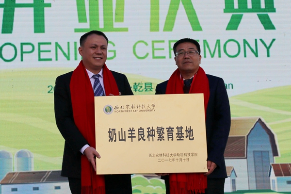 赵延安书记为陕西百越优利士乳业公司授“奶山羊良种繁育基地”牌匾