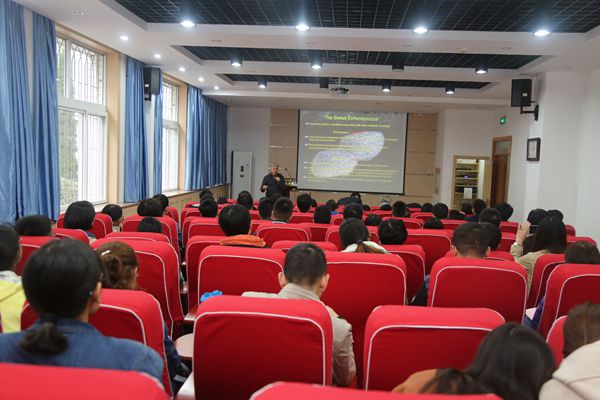 首先,Axel Hartke教授简要介绍了卡昂大学的发展历史与院系分布情况。随后,Axel Hartke教授重点就自己的科研进展及研究成果进行了汇报,他的研究内容主要包括抗菌肽对肿瘤细胞的杀灭作用,从而为治疗肿瘤疾病提供新的方法。Gérard Barroso教授主要从新型镰刀菌的快速筛选鉴定,毒素作用机理及调控措施以及真菌与食品安全的关联等方面的进行了系统的讲解。整场报告会座无虚席。会上,与会师生就相关问题与两位教授进行了充分的交流。两位教授的报告开阔了宅宅爱动漫 师生对于抗菌肽与菌体的视野,对从事相关研究的师生有重要的借鉴作用。