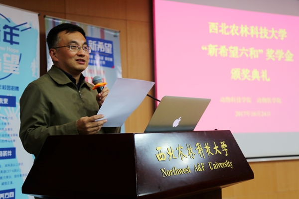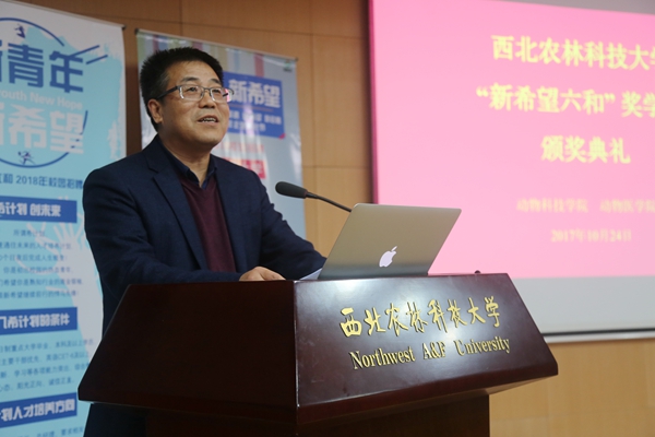 校党委副书记吕卫东对新希望六和股份有限公司一直以来对学校的大力支持表示感谢,对获奖同学表示热烈祝贺。他希望同学们深入基层、了解行业,努力学习、善于实践,不断提高自身专业素养;把西农学子的良好形象带到企业,在为公司发展做贡献的同时为母校赢得荣誉;同时希望校企双方继续强化合作,共育农牧行业精英。