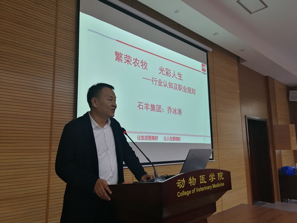 乔冰涛副总裁以行业认知、职业定位、行业瓶颈为出发点,通过一系列的数据,对比了近年来国内外农牧行业在机械化生产、环保理念、品种繁育等方面的发展差距,向大家说明了今后农牧行业基本发展趋势以及人才需求。在谈到职业定位与自我发展时,乔冰涛副总裁强调,农牧行业一直以来都是朝阳产业,与人民的生活息息相关,学习农牧相关产业的专业意义重大,必须抱着“既来之,则安之”的态度,保持良好的心态,根据实际情况分成三个阶段来实现自我发展,第一阶段是学习阶段,打好专业基础;第二阶段是自我锻炼阶段,实现综合发展;第三个阶段是事业阶段,实现能力质的飞越。
