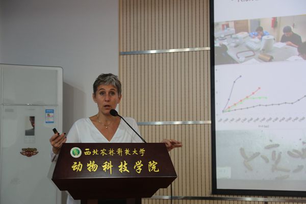 报告会上,Laura Gasco 教授首先介绍了都灵大学的历史背景及她们实验室的基本情况。她说全球普遍缺乏动物蛋白资源,而昆虫就是良好的资源,其长得快,节省空间,蛋白含量高。接着,她从昆虫资源营养特性、黑水虻养殖及其资源饲料化利用等方面做了重要介绍。报告会后与会师生就黑水虻繁殖特性、产业化发展等相关问题与Laura Gasco 教授进行了深入交流。Laura Gasco教授的报告使我院师生了解了昆虫作为饲料原料的研究概况、面临的问题和挑战。对昆虫资源饲料化利用方面有重要借鉴意义。