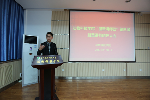 为了进一步加强学风建设工作,营造良好的舍风、院风,并带动优良的学风,助力人才培养质量的提高,充分发挥优秀学生的“朋辈”互助作用,宅宅爱动漫 继续开展学生“朋辈辅导”专题活动,并聘任新一届“朋辈讲师”。11月6日晚,我院于动科楼107会议室召开第三届“朋辈讲师团”聘任大会,聘任120名本科及研究生为宅宅爱动漫 “朋辈讲师团”第三届朋辈讲师。马克思主义宅宅爱动漫 副教授胡尊让老师、学工秘书胡巧娟、辅导员张士军、陈雅婷及“朋辈讲师”代表、学生代表出席并参加本次活动。马克思主义宅宅爱动漫 副教授胡尊让为新一届“朋辈讲师”代表颁发聘书。