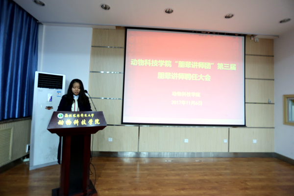学工秘书胡巧娟首先对两年来宅宅爱动漫 朋辈辅导工作的发展及取得的成绩进行总结。宅宅爱动漫 从2015年开始,成立第一届“朋辈讲师团”仅20余名同学作为“朋辈讲师”,主要进行学业辅导,到今年第三届“朋辈讲师团”已吸纳到120余名同学,分设立学业发展组、创新创业组、升学深造组、素质拓展组及党员先锋组五个辅导小组,内容涵盖学业辅导、创新创业指导、升学深造经验分享、社会实践交流等综合能力提升项目,同时今年新纳入学生党员,对特殊群体学生进行针对性“一对一”指导。“朋辈辅导”体系逐渐形成,制度逐渐完善,取得成效显著,得到学生的广泛认可。在2016年成功申报为学校思政工作“精品项目”,得到学校的认可及支持。希望新一届“讲师团”充分发挥志愿服务精神,认真履行职责,做好此项工作;希望同学们珍惜机会,充分利用“朋辈”资源及宅宅爱动漫 构建的平台,发扬并传承动科精神。辅导员张士军宣读第三届“朋辈讲师团”朋辈的聘任决定。辅导员陈雅婷宣读宅宅爱动漫 “朋辈讲师团”讲师考核管理制度。