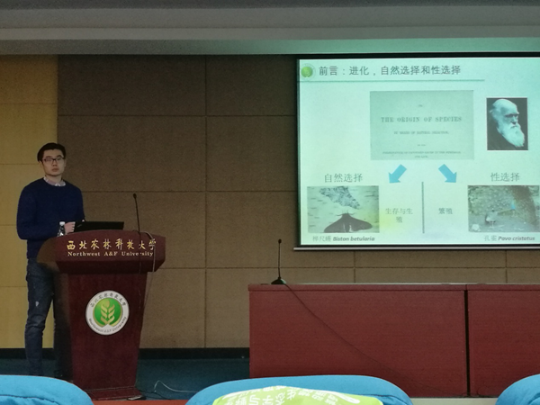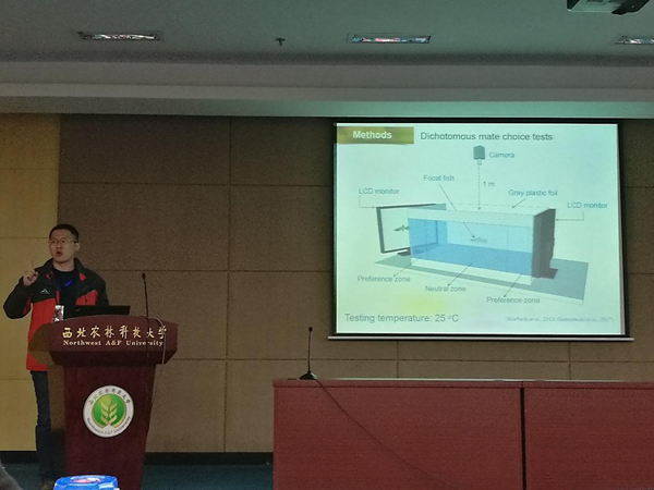 陈波见老师作了题为“性格特征对西部食蚊鱼雌雄两性配偶选择决策的影响”的青年论坛报告,介绍了他目前在行为生态学的研究工作。