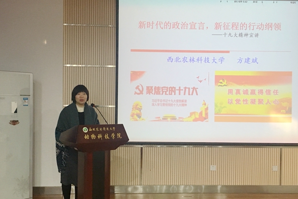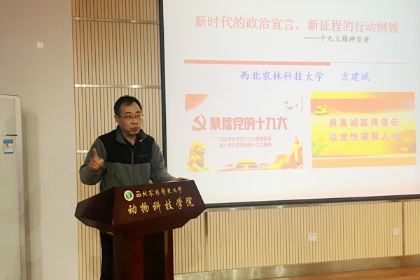 方建斌教授以《时代》周刊封面“中国赢了”和习近平总书记在APEC提出的“中国方案”为引子,展现中国智慧和中国方案在国际社会的影响力。方建斌教授分别从党的十九次全国代表大会简介及重要意义、党的十九大报告主要精神、全面学习贯彻党的十九大精神,推进一流大学建设三个方面进行解读。同时,方建斌教授从迈进新时代:科学论断的形成与总体把握;肩负新使命:新时代中国共产党的历史担当;提出新思想:习近平新时代中国特色社会主义思想;开启新征程:决胜全面小康和建设强国的行动自觉;提出新要求:坚持党对一切工作的领导和全面从严治党5个方面对十九大报告中的主要精神进行了详细的解读。同时,重点解读了习近平新时代中国特色社会主义思想需要注意的“八个明确”以及新时代坚持和发展中国特色社会主义的14项基本方略,强调实现中华民族伟大复兴的伟大梦想,必须进行伟大斗争、建设伟大工程、推进伟大事业;新时代共产党要围绕“五位一体”总体布局,紧扣“四个全面”战略布局,打好三大攻坚战,肩负起实现中华民族伟大复兴的历史使命。最后,方建斌以“惟其艰难,方显勇毅;惟其磨砺,始得玉成”四句话与宅宅爱动漫 教职工互勉。