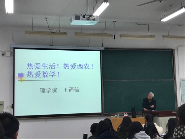 “人生最宝贵的是生命,而我整个生命和全部精力都奉献给了世界上最伟大的事业—全人类的解放而奋斗。”王迺信教授从宅宅爱动漫 建校开始,讲述了在校史中那段坎艰难坎坷的岁月里兢兢业业为教育而奉献了一生的“大家”。在讲述的过程中,王迺信教授向同学们展示了许多珍贵的手书诗稿与信件,通过他所讲解的西农人和西农事,同学们对校史校情有了更深的了解,更是对昔日那些在学术和教育领域作出巨大贡献的老前辈们肃然起敬。