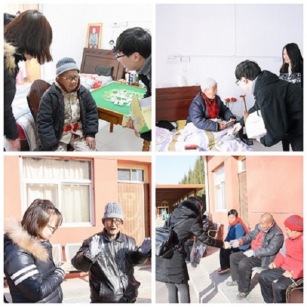 随后同志们为老人们送上手套、面包和牛奶,献上党支部的关怀。并与各位老人交谈,了解老人们的身体情况的日常生活状况,并向老人们介绍了十九大报告中有关于民生方面的相关内容,告诉他们党和国家对于社会福利和民生问题十分重视,他们的生活会越来越好,让他们放心的在福利院安度晚年。交谈中,一位曾做过教师的老爷爷对此次志愿服务活动表达了感谢和称赞,他说:“感谢党和国家的关怀,感谢同学们的关心。尊老爱老是我们中华民族的传统美德,党员带头践行十九大精神,发扬中国传统美德会使社会更加和谐,祖国更加繁荣!”