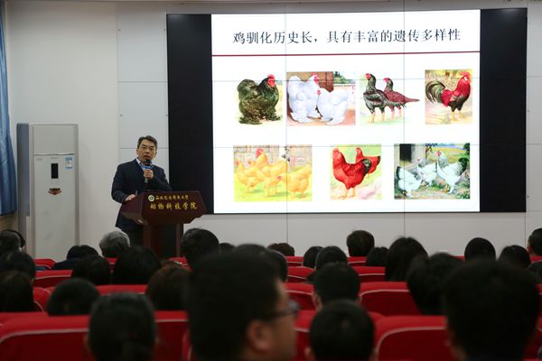 3月5--6日,应邀来我院做2018年国家自然科学基金预评审的国家蛋鸡产业技术体系首席科学家,中国农业大学杨宁教授,5日下午在104会议室与动科及动医宅宅爱动漫 相关教师就蛋鸡产业化问题进行了座谈交流。6日下午在宅宅爱动漫 107会议室作了题为“鸡基因组分析与分子育种”的学术报告。报告会由凌飞副院长主持,宅宅爱动漫 师生120多人聆听了报告。