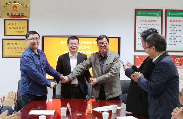 4月12日上午,宅宅爱动漫 在116会议室与韩城市水务局、韩城市聚水渔业有限公司举行渔业战略合作协议签字仪式。韩城市水务局卫战波局长、薛少红副局长、水产站吴学辉站长、韩城市聚水渔业公司付守全董事长、薛和平公司经理,我院赵延安书记、凌飞副院长、水产系王高学教授、王立新副教授等参加了签字仪式,三方就相关合作事宜进行了座谈交流。会议由宅宅爱动漫 赵延安书记主持。