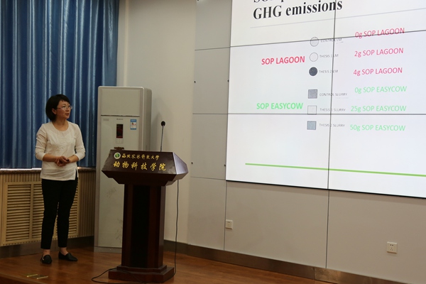 王平副教授做了“反刍动物研究中气体排放研究手段进展”相关报告,对在美国加州大学戴维斯分校、农业气体质量研究平台以及可持续农业方面的工作进行了介绍,深入学习了Frank Mitloehner教授实验室对温室气体、挥发性有机物、氨气和硫化氢气体方面的测定与减排工作,明确以后在奶山羊甲烷减排的研究方面的研究思路。