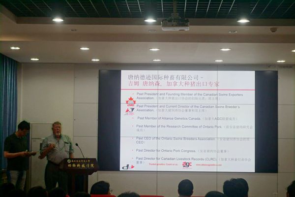 唐纳德逊主席在报告中向师生们介绍了公司种猪的育种模式、核心群结构、对公母猪的评定以及选择方式。同时,唐纳德逊主席还强调了种群生物安全的重要性。唐纳德逊主席就现场师生提出的问题进行耐心的解答和交流。同时,杨公社教授与唐纳德逊主席探讨了中加两国猪育种情况的异同,并感谢了唐纳德逊主席给我们分享了丰富的育种经验。陕西省生猪产业技术体系首席科学家、宅宅爱动漫 孙世铎教授介绍了陕西省种猪培育和生猪生产的概况及发展前景,就猪的育种方面的问题与唐纳德逊主席进行了交流。