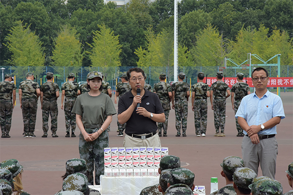 入秋后的一场场秋雨,并没有将原本酷热的天气消除殆尽,训练场上的学员们正挥洒着汗水,磨练着意志,释放着青春活力。4日,宅宅爱动漫 院长姚军虎、党委副书记王力来到田径场慰问军训中的2018级新同学,带来了不同风味的酸羊奶,学生方阵中响起了阵阵掌声与欢呼。