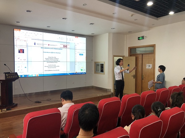 下午,Chen Xinhua教授在107会议室作了题为“Clostridium difficile Infection - Understanding Gut Microbiota and Host Immune Responses”的学术报告。宅宅爱动漫 相关师生150余人参加报告会,会议由姚军虎教授主持。会上,Chen Xinhua教授介绍了艰难梭菌结肠炎的临床症状及粪便移植技术在艰难梭菌结肠炎治疗中的应用,与会师生与Chen教授进行了深入的交流。此次报告会加深了我院与哈佛医宅宅爱动漫 的交流与合作,对后续开展相关研究工作具有很大的帮助。