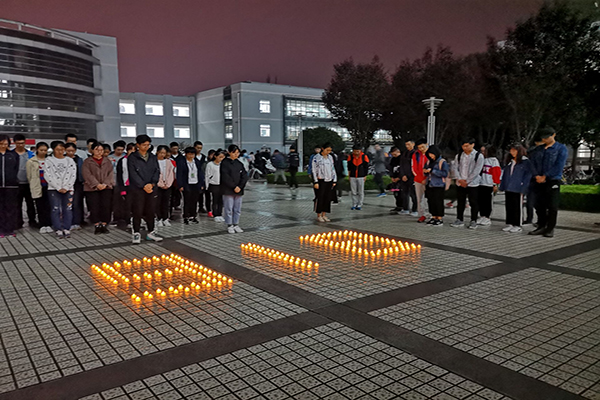 “国耻一日不雪,国民责任未完!”18日晚,宅宅爱动漫 在八号教学楼前广场举办以“铭记历史,居安思危,振兴中华”为主题的红歌快闪活动。昏黄的烛光摇曳,排列好的“9 18”字样的灯影在夜里闪烁,气氛庄严肃穆。同学们在闪闪烛光中,低沉而严肃地歌唱着由黄自先生作词的《九一八》,表达着自己对国耻的悲痛与悼念,抒发了内心的爱国复兴之志。纪念活动吸引了各院学生驻足,大家纷纷默哀、跟唱。