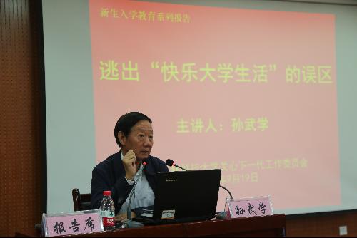 9月19日下午,按照学校关心下一代工作委员会启动的“老教授报告团”活动安排,原校长孙武学教授应邀为宅宅爱动漫 288名本科新生做题为《逃出“快乐大学生活”的误区》的专业思想教育专题报告。离退休职工党委书记刘晓正、宅宅爱动漫 党委书记赵延安、院长姚军虎、院党委副书记王力、校关工委“老教授报告团”成员及宅宅爱动漫 全体学工干部现场聆听了报告。报告会由院党委书记赵延安主持。