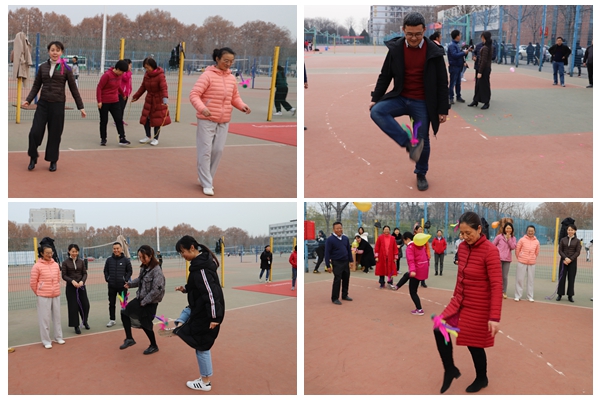 本次趣味运动分为单人1分钟跳绳、单人1分钟踢毽子、合作运球、定点投篮、托乒乓球跑五个项目。比赛中,教职工积极参与、热情高涨,现场气氛融洽而热烈,紧张与关注并存,关心与鼓励同在,欢声与欢笑不断,每个人的脸上都洋溢着快乐和幸福,达到了通过运动寻求健康与快乐的目的。