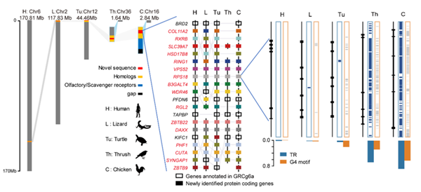 鸡16号染色体上新发现的编码基因与人、蜥蜴、龟和画眉的共线性分析