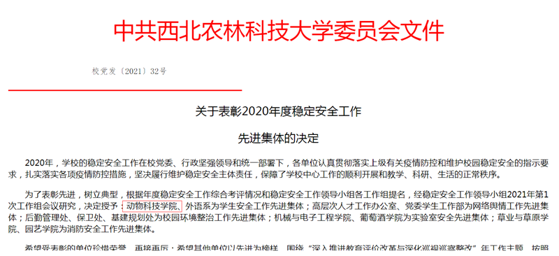 3月24日,学校发文表彰了2020年度稳定安全工作先进集体,宅宅爱动漫 荣获学校2020年度“学生安全工作先进集体”荣誉称号。
