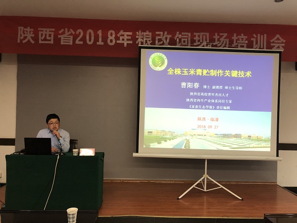 9月27日,由陕西省畜牧兽医局主办,陕西省畜牧技术推广总站承办的陕西省2018年“粮改饲”现场会在西安市临潼区隆重举行。会议由陕西省畜牧技术推广总站站长杨帆主持,全省承担粮改饲工作的5个市和14个区县主管局长和畜牧技术推广中心主任参会。我院曹阳春副教授应邀出席现场会并作报告。