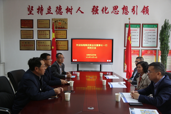 赵延安书记向莫金枝董事长一行介绍了双方自合作以来在人才培养、社会实践、校园文化等方面合作取得的显著成绩,希望双方能够在“扬翔班”的人才培养模式基础上,进一步深化合作力度,持续加强与导师的联系,共同探索新形势下研究生的人才培养模式,让研究生,特别是专业型研究生将毕业论文与生产实践实现有机结合,在生产实践中提升自身专业本领。