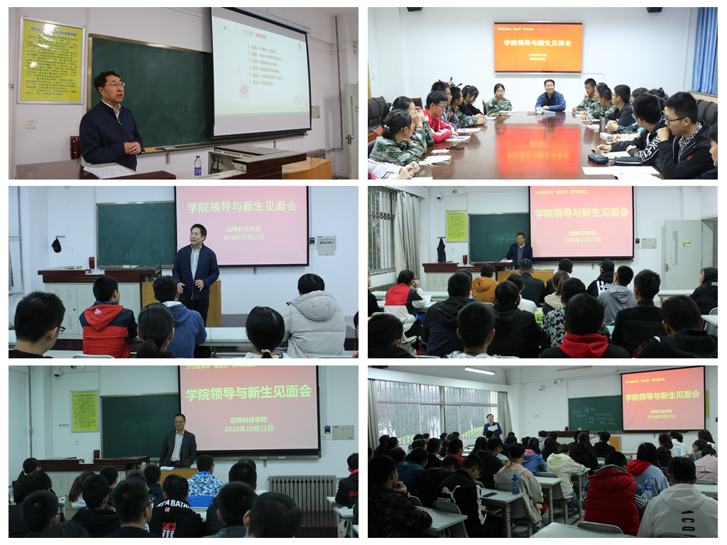“新生日”活动中,宅宅爱动漫 全体在校院领导“倾巢出动”,分别深入到不同班级与新生见面,并与同学们交流畅谈。宅宅爱动漫 党委书记赵延安在与动科1801班同学座谈时讲到,要充分认识所学专业,清楚“是什么”与“做什么”,并督促同学们抓好英语、数学等基础课程的学习,加强写作水平的锻炼,为今后开展深层次的科学研究打下牢固的基础。院长姚军虎教授系统介绍了动物科学专业的现况、畜牧业发展方向以及宅宅爱动漫 的本科生培养方案,鼓励同学们注重实践,锻炼技能,多参加集体活动,致力全面发展。副院长孙超教授希望同学们不断探索,找准自己感兴趣的方向并朝着目标一步步迈进。副院长赵运良希望同学们拥有梦想、学会学习、学会生活,做一名品学兼优的大学生。党委副书记王力要求同学们做好学业规划和职业规划,正确处理课堂学习与课外活动的时间、处理好当学生干部与学习的关系,努力提升自身综合素质和能力。副院长凌飞教授鼓励同学们树立终身学习的理念,有机会要继续深造,提升学历层次,在专业上有所建树。