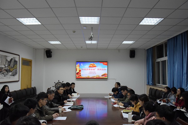 会上,大学生第一党支部曾鑫同志领学了习近平总书记在浙江省委办公厅总结表彰大会、中央党校2009年春季学期第二批进修班暨专题研讨班开学典礼及全国宣传思想工作会议上分别引用的三句典语:“吾生也有涯,而知也无涯”、“腹有诗书气自华”、“凋碧树,独上高楼,望尽天涯路。衣带渐宽终不悔,为伊消得人憔悴。众里寻他千百度,蓦然回首,那人却在灯火阑珊处”,结合原典全面理解典语含义、深刻领会总书记讲话精神。