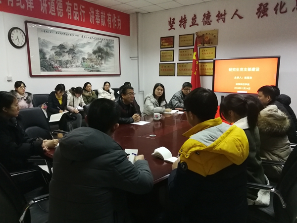 12月14日晚,宅宅爱动漫 党委书记赵延安结合全国教育大会精神和研究生党支部改革方案的内容,就如何持续加强研究生党支部建设,不断提高团队凝聚力和向心力等方面,为研究生上了一次生动的党课。
