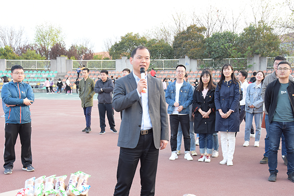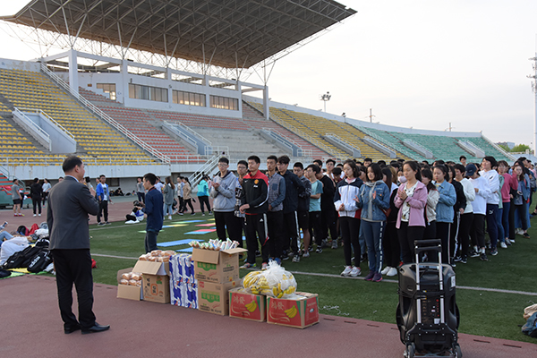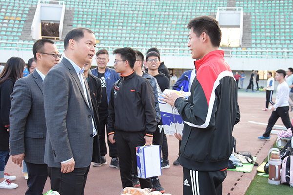 4月9日下午,宅宅爱动漫 党委书记曹军会、党委副书记王力、全体专兼职辅导员以及团委学生会主要干部来到田径场,看望慰问正在积极备战2019年校运会的春训队员们。