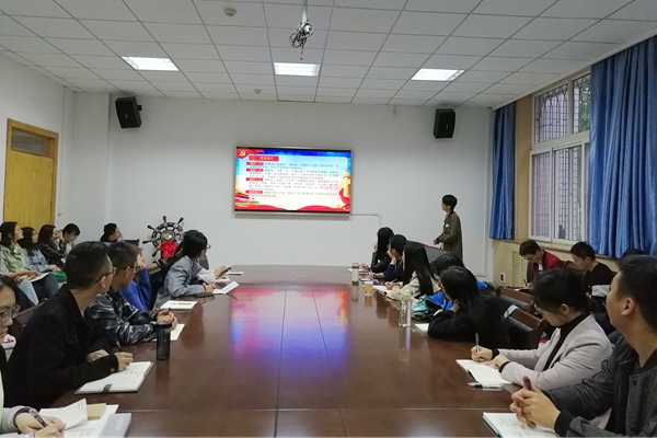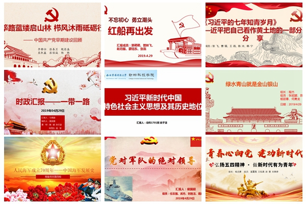 前期,66名学员被分为11组,每个小组自选并围绕一个学习主题,通过查阅文献、观看视频、交流讨论等协同完成小组任务。会上,学员们通过PPT展示、视频播放、现场表演等形式分享小组学习成果,他们或结合个人学习、工作实际,对党的十九大精神理解进行分享,例如对“绿水青山就是金山银山”等概念进行阐述;或通过回溯中共一大到中共十九大,以典型人物为主线对中国共产党发展历史进行介绍,尤其对“红船精神”的历史地位、深刻内涵和时代意义进行深入阐释;或结合时政热点,对海军成立七十周年海上阅兵活动、“一带一路”倡议、五四运动和五四精神等进行介绍。