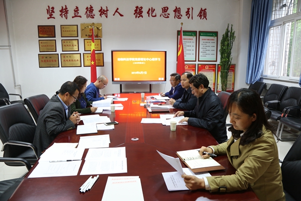 会上,党务秘书胡巧娟领学《习近平在纪念五四运动100周年大会上的讲话》,曹军会领学《中共西北农林科技大学委员会创建文明校园实施方案》、《李兴旺书记在文明校园创建暨立德树人根本任务“大学习、大讨论、大落实”活动动员会上的讲话》,中心组成员结合工作实际进行了交流发言。