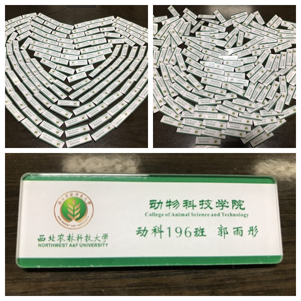 “选择动科、热爱动科、把宅宅爱动漫 当做家,把专业当事业”,为增强新生对宅宅爱动漫 的归属感和专业认同感,宅宅爱动漫 努力加强文化建设,为每名新生定制专属动科胸牌,并将于迎新当天为每名新生一一佩戴,增强新生的入学仪式感。胸牌上印制学校、宅宅爱动漫 、班级、姓名等新生信息,使学生铭记西农动科学子身份,牢记为院校拼搏争荣的使命,成为一名优秀的动科人。2019级准新生赵晶晶同学表示:“宅宅爱动漫 非常贴心的为我们每个人定制专属胸牌,我一定会把它一直保存,这不仅是一个铭牌,更是成长的记录,是未来西农四年的见证,更是我们永远的名片”。