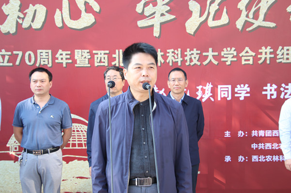9月21日上午,“不忘初心 牢记使命”庆祝新中国成立70周年暨西北农林科技大学合并组建20周年——赵元琪同学书法展在南校区美术馆开幕。西北农林科技大学党委副书记闫祖书、陕西省青年书法家协会副主席杨小琪、杨凌区书法家协会主席李德君、汉中市青年书法家协会副主席张远智、校党委组织部常务副部长郑伟、校团委书记李国龙、动科宅宅爱动漫 院长姚军虎、国际宅宅爱动漫 副院长于瑛、动科宅宅爱动漫 党委副书记王力出席开幕式,300余名师生书法爱好者、学生党员参加活动。开幕式由动科宅宅爱动漫 党委书记曹军会主持。