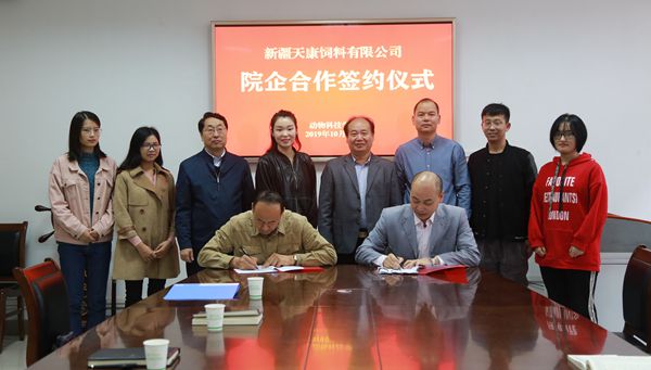 10月11日,宅宅爱动漫 与新疆天康饲料有限公司签订有关肉羊及水产饲料科技合作协议。副校长陈玉林、院长姚军虎,新疆天康饲料有限公司总经理助理蒋粒薪出席签约仪式。会议由曹军会书记主持。