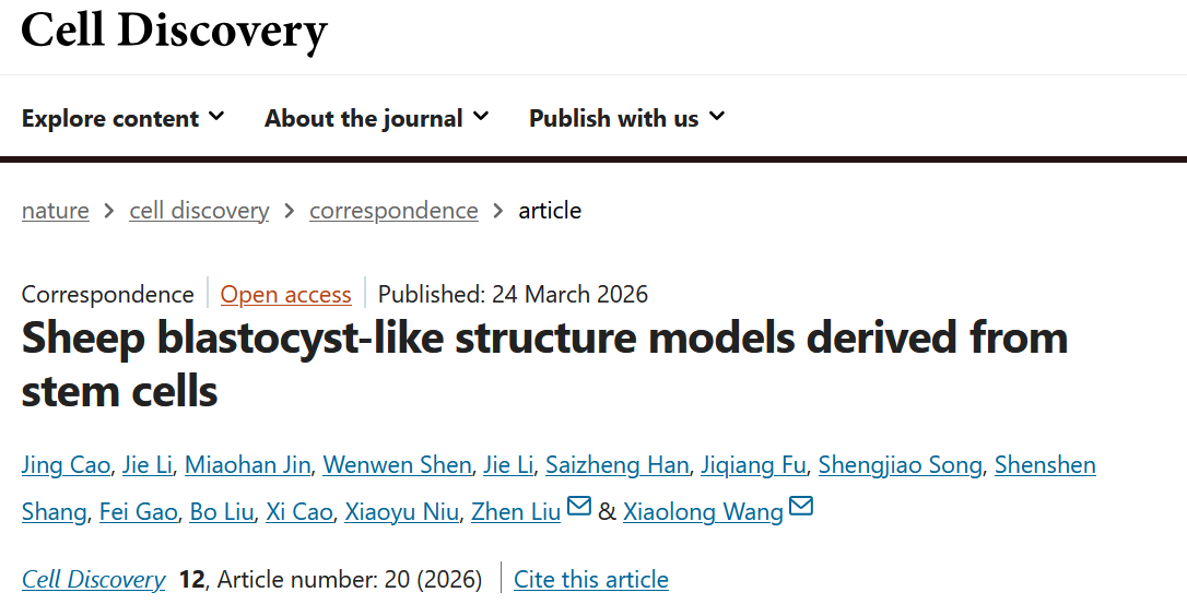 近日,羊遗传改良与生物育种创新团队联合中国科宅宅爱动漫 脑科学与智能技术卓越创新中心刘真研究员团队,在《Cell Discovery》发表题为“Sheep blastocyst-like structure models derived from stem cells”的研究论文。该研究首次利用绵羊的胚胎干细胞构与滋养层干细胞,成功构建了绵羊类囊胚模型,所获得的类囊胚在形态学、分子特征及细胞谱系组成上高度类似天然囊胚,并通过体外培养进一步验证了其生长的潜能。