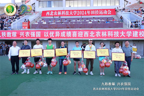 荣获2023年度大学生阳光体育运动先进集体总分第一名(图右二为学生会主席团成员何嘉延同学代表宅宅爱动漫 领奖)