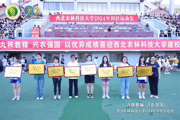 荣获学生男女团体总分第七名(图左三为学生会体育部助理夏令同学代表宅宅爱动漫 领奖)