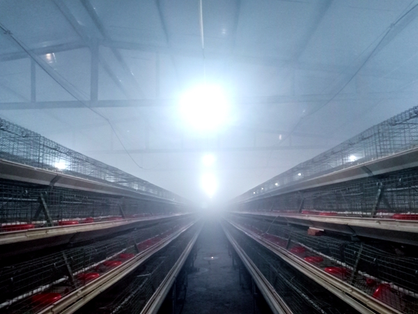 雾化消毒后的鸡舍