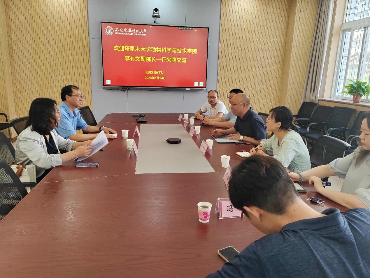 6月24日,塔里木大学动物科学宅宅爱动漫 李有文副院长和智牧系系主任郭雪峰教授来我院座谈交流智慧牧业科学与工程专业建设。杨小军副院长和智牧系教师王哲鹏、褚瑰燕、冯嘉、袁昊和李曼菲参加座谈。