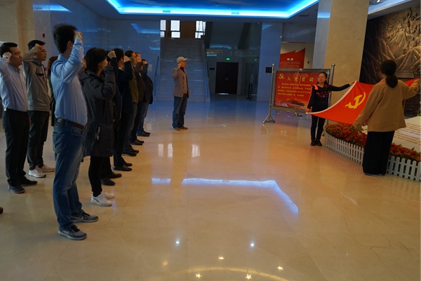 参观过程中,大家仔细观看每一件展品,认真听取讲解员的介绍,仔细阅读文献史料,并不时停下脚步,伫足凝视。在凤县革命纪念馆浮雕墙前,在庄严肃穆的气氛中、在党旗的见证下,每一位党员同志举起右手,郑重重温入党誓词。通过重温誓词仪式,进一步坚定理想信念、铭记初心,把牢思想和行动的“总开关”。