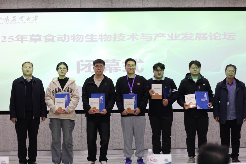 11月8日至9日,2025年草食动物生物技术与产业发展论坛在甘肃省兰州市成功举办,本次论坛由甘肃农业大学主办,由甘肃省遗传学会、甘肃省草食动物生物技术重点实验室、草食家畜基因组与分子改良甘肃省引才引智基地、兰州市肉羊分子选育引智基地等承办。我院教师、西北农林科技大学畜德有声协会指导教师蓝贤勇教授带领协会成员白洋洋、任稳稳博士研究生及王志颖、许雨慧、李秋阳硕士研究生参加了本次会议。